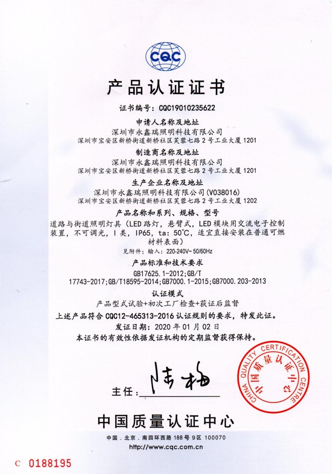 永鑫瑞秉承高效、綠色、環(huán)保的理念,是新時(shí)代節(jié)能燈具的先鋒。并通過了國內(nèi)外多項(xiàng)權(quán)威認(rèn)證,如:ISO9001, CCC,CE,ROHS、防爆認(rèn)證等。 產(chǎn)品廣泛應(yīng)用于:戶外照明、工業(yè)照明、體育球場(chǎng)照明、隧道照明、道路照明以及特殊防爆場(chǎng)所等,我們的產(chǎn)品遠(yuǎn)銷于北美、歐洲以及其它如:巴西、日本、東南亞等國家,深受各國客商的認(rèn)同與青睞。 永鑫瑞一直堅(jiān)持以品質(zhì)第一、價(jià)格合理、交貨準(zhǔn)時(shí)、客戶滿意的原則,以市場(chǎng)為導(dǎo)向,以真誠服務(wù)為宗旨,嚴(yán)格按照國際標(biāo)準(zhǔn)來要求自己,不斷提升產(chǎn)品質(zhì)量以及全面貼心的售后服務(wù)來贏得國內(nèi)外客戶的需求,為全球節(jié)能減排、綠色環(huán)保照明產(chǎn)業(yè)做出卓越的貢獻(xiàn)。 永鑫瑞照明真誠的期待與您共創(chuàng)輝煌。